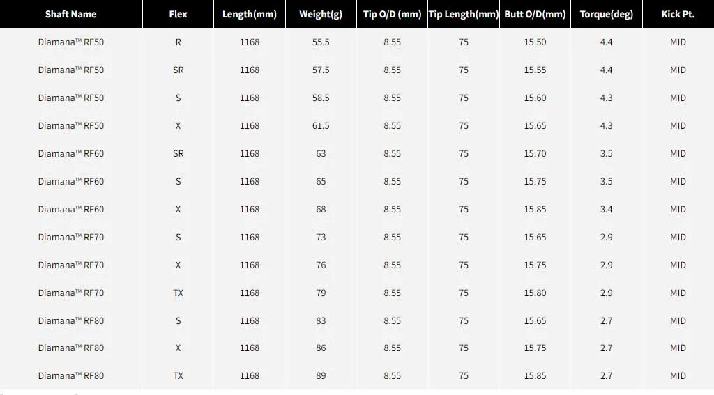 Diamana™ RF Series 最新的設計實現了適當的球飛高度以及運動員所追求的適度抓地力。