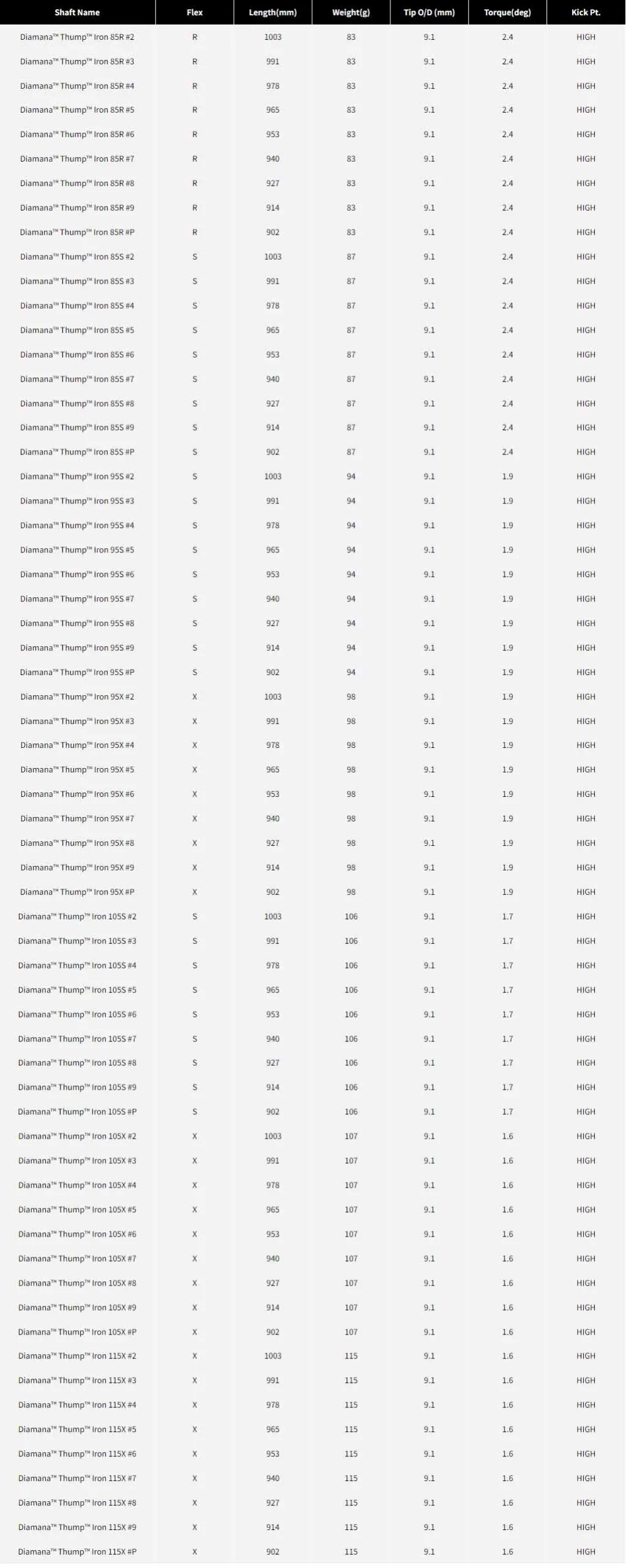 Diamana™ Thump Iron Series 是針對擴展了Diamana™ Thump™ FW/Hybrid/Iron的規格,並進行了全新的改款。